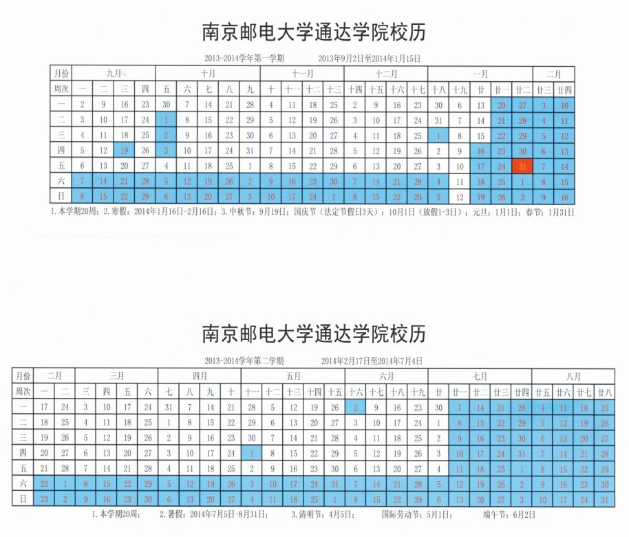 学院2013—2014学年校历