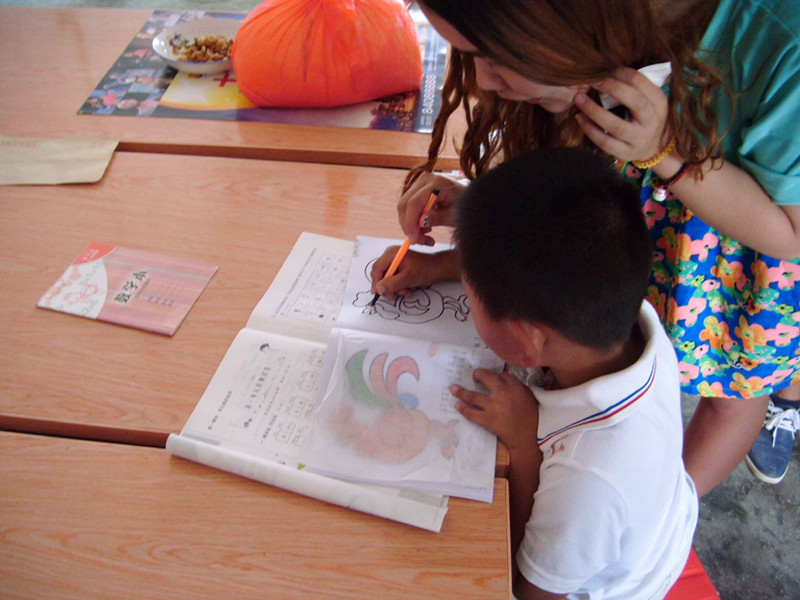 8月13日上午9时许,我校5名师生驱车来到了盐城市滨海县八巨镇八巨中心小学。八巨中心小学,是一所农村完小,共有6个年级,10名教师,教学条件非常艰苦。抵达学校的时候正值孩子们放暑假,但当得知大学生社会实践团队的到来后,当地的留守儿童还是对这群有热情、有智慧、有爱心的大哥哥大姐姐表现出浓厚的热情。在团队成员对留守儿童们的学习情况进行了初步了解后,志愿者决定针对小朋友们的数学课程进行强化辅导。面对着那一张张瘦小却充满求知欲的笑脸,那一双双渴求却透露坚定的眼神,志愿者们寓教于乐,采用提问的方式对小朋友们学习中的问题一一解答。