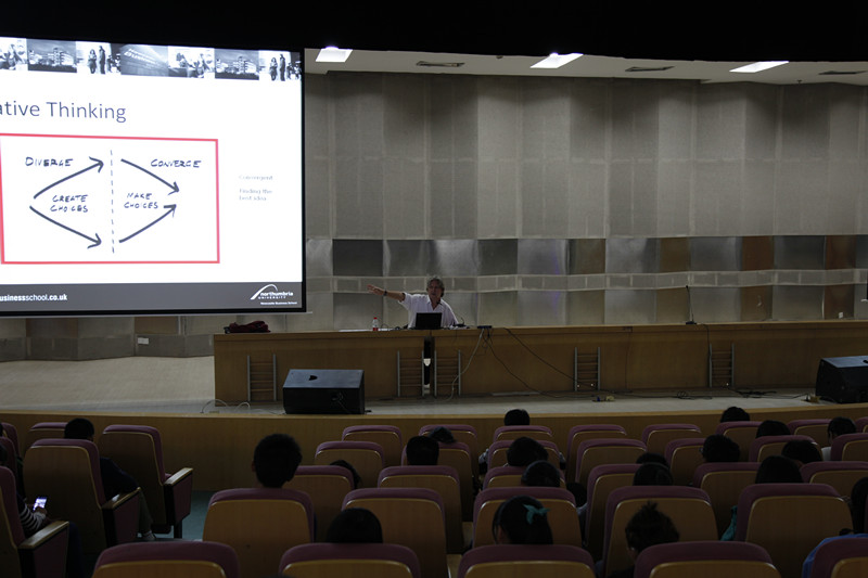 Jamie Wetherston教授从如何认识和理解创新、创造的内涵,创新、创造对企业,尤其是对中小企业发展的价值,创新、创造的形式等方面,引导和启发学生如何从生活中汲取创新、创造的元素和思维,开展创新、创造活动。他以诺桑比亚大学学生开展创新、创造,并进一步创业的典型案例,告诉学生创新、创造处处存在,每个有心人都能成为创新者,进而成为创造者。