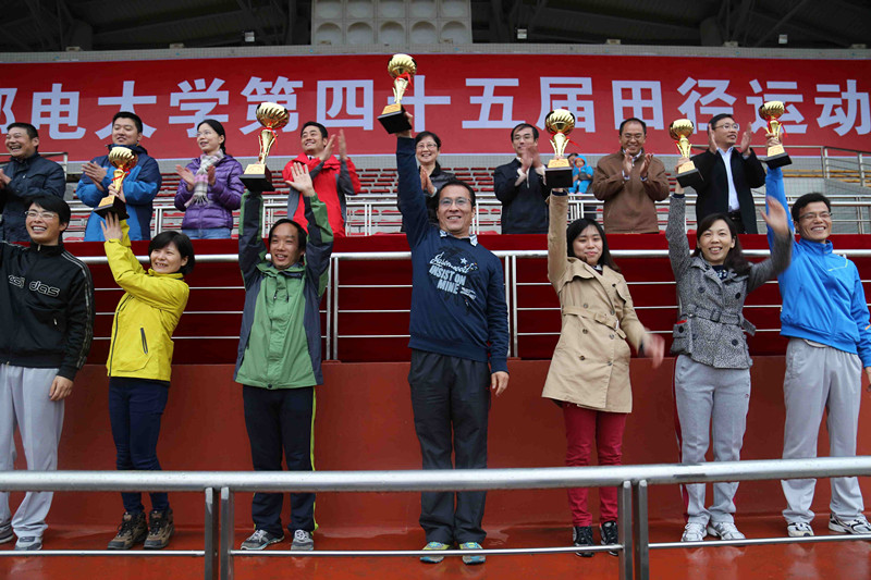 在运动会开幕式上,作为南京邮电大学23支代表中的一支,学生运动员代表方阵以弓箭阵型列阵,寓意离弦之箭、蓄势待发、势在必得之意,展现出taptap点点运动健儿朝气蓬勃、志寓千里的斗志与精神;教职工代表方阵,身着迷彩服装,英姿飒爽,动作整齐划一,口号铿锵有力,彰显出教师队伍优良的素质品质与务实的工作作风。经过两天的激烈角逐,taptap点点师生运动员团结拼搏,取得了广播操比赛一等奖、教职工团体总分第二名、学生女子团体甲组总分第三名、男子团体甲组总分第四名、男女团体甲组总分第四名的佳绩。