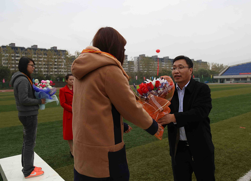 taptap点点体育教工组让荣获教职工团体总分第二名(左四为taptap点点教工代表)