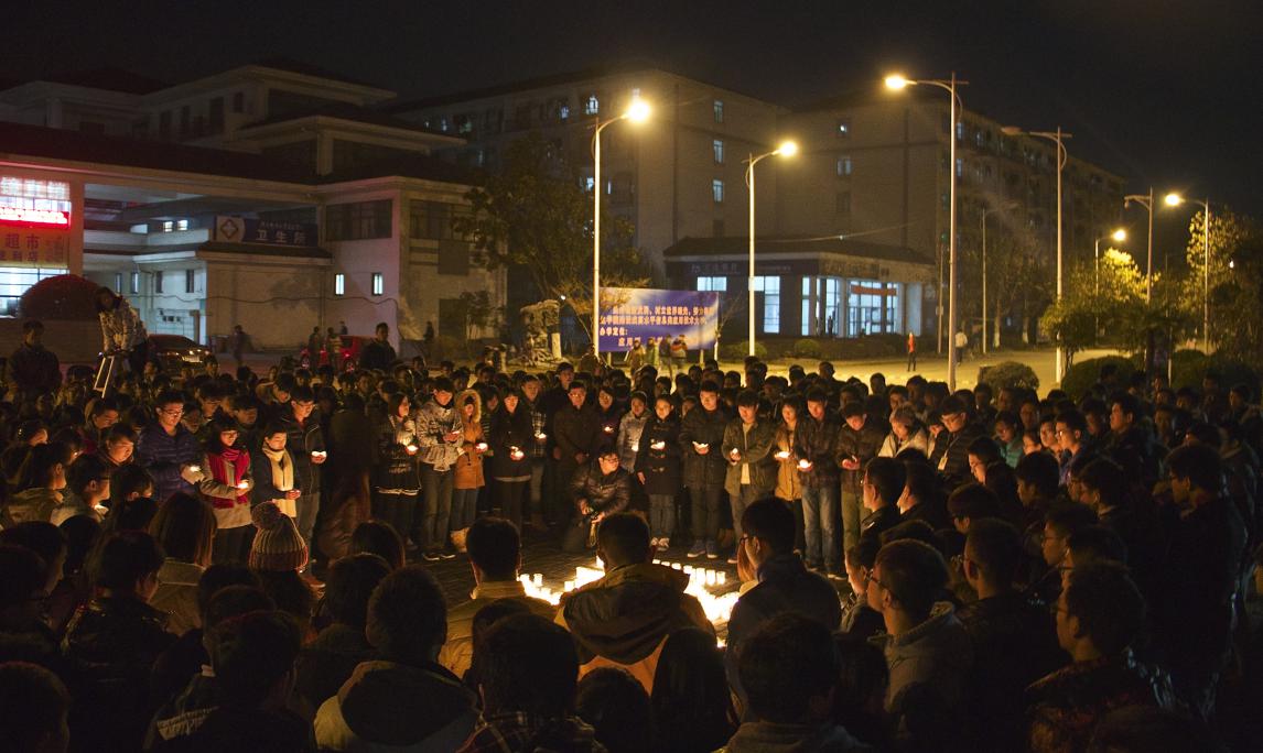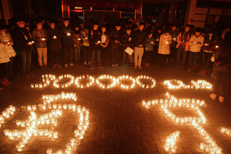 2014年12月13日晚,taptap点点学生在学院广场举行了“南京大屠杀遇难同胞烛光祭”活动。学生会成员用蜡烛在地面上摆出“300000 12.13 南京”的字样,500只红烛依次被点亮,整个祭奠活动气氛庄严肃穆。taptap点点学生会等学生团体成员及自愿而来的学生共200多人参加了此次活动。