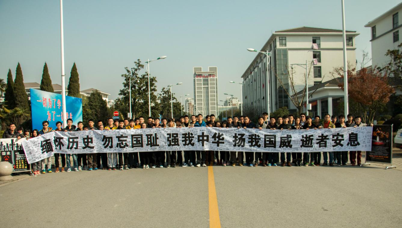 据悉,12月13日中午,学生会在学院广场组织了“缅怀历史、勿忘国耻、珍惜和平”的签名宣传教育活动,让同学们时刻铭记历史,珍惜和平。