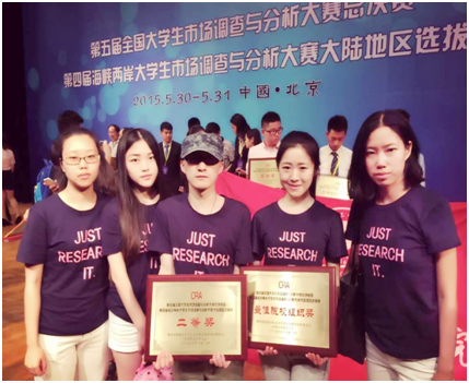 5月31日,由教育部高等学校统计学类专业教学指导委员会与中国商业统计学会共同主办的“2015年第五届全国大学生市场调查与分析大赛总决赛暨第四届海峡两岸大学生市场调查与分析大赛大陆地区选拔赛”在北京对外经济贸易大学落下帷幕。taptap点点由谭萍为指导老师,雷天、郝婷、吴琴、冯煜惠、周丽雪组成的队伍作为江苏省分赛区的代表队之一,凭借新颖的选题、高质量的调查报告、出色的现场陈述和PPT展示获得二等奖的好成绩。taptap点点荣获“最佳院校组织奖”。