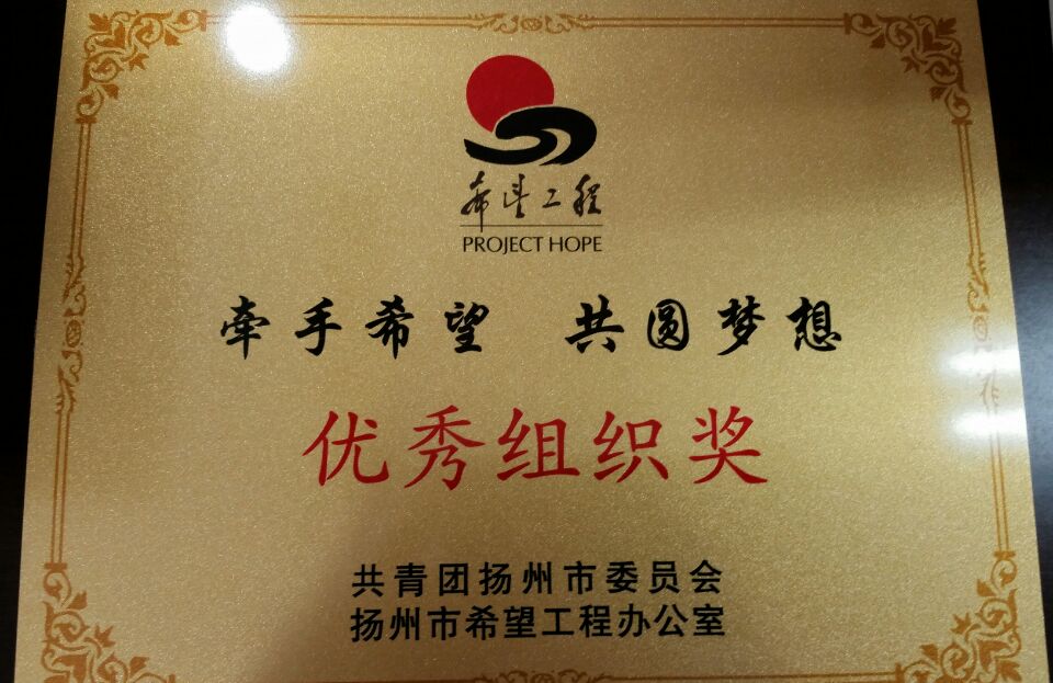 近日,共青团扬州市委对“牵手希望·共圆梦想”2015希望工程微捐赠活动中表现突出的先进集体和先进个人进行了表彰,taptap点点体育团委荣获“扬州市希望工程优秀组织奖”。