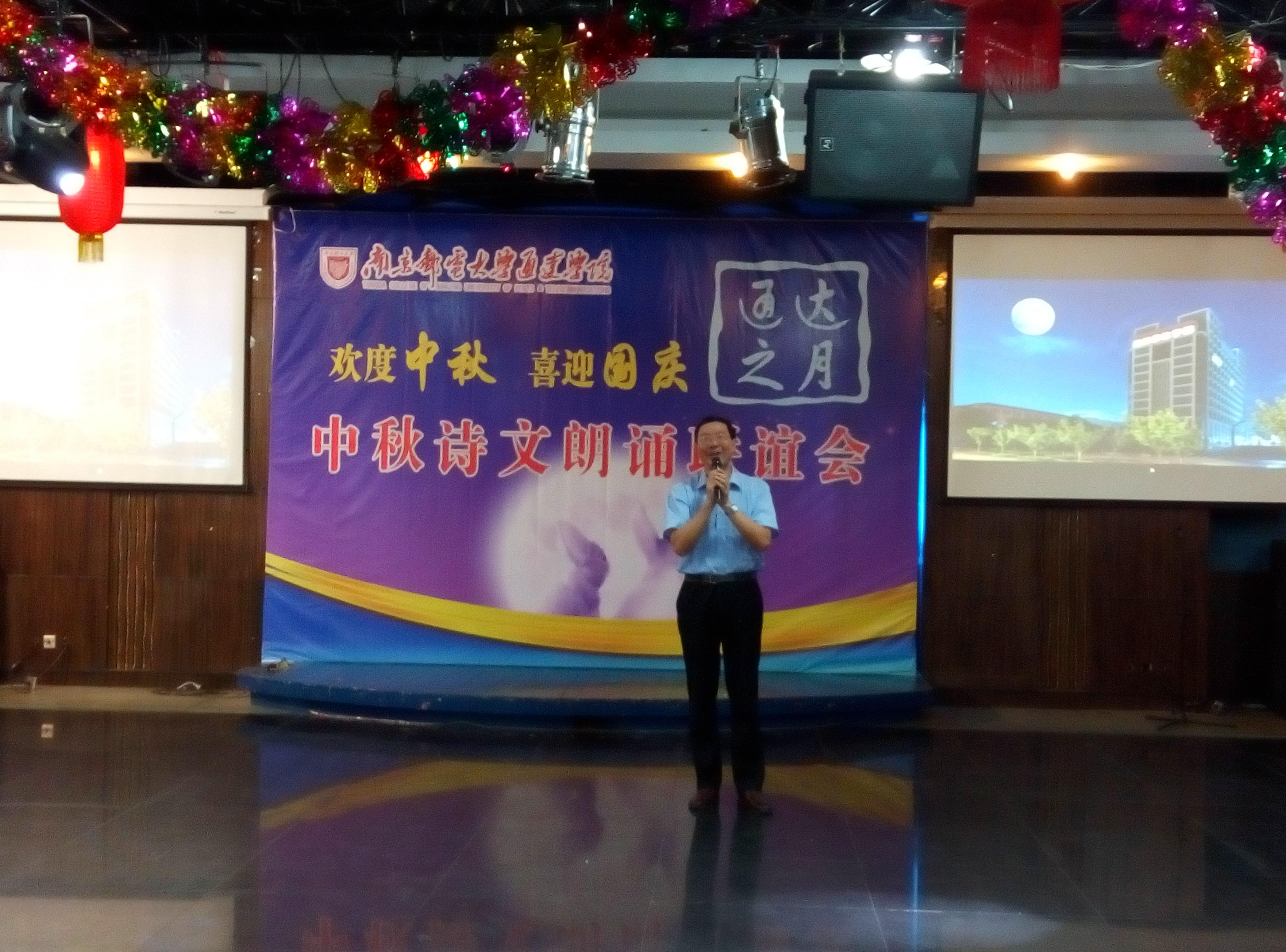 院党委书记戴兆骏代表学院向全体教职员工及其家人深情寄语、祝福中秋佳节。戴书记在讲话中简要回顾了今年学院在招生、就业、考研、人才培养、科技创新训练、后勤服务等方面所取得令人欣喜的成绩,特别是暑期在扬州各类媒体刮起的“通达风”所赢得的良好社会声誉,令全场教职工无比振奋,鼓舞并激励着每一位“通达人”为实现共同的通达梦而奋勇向前。