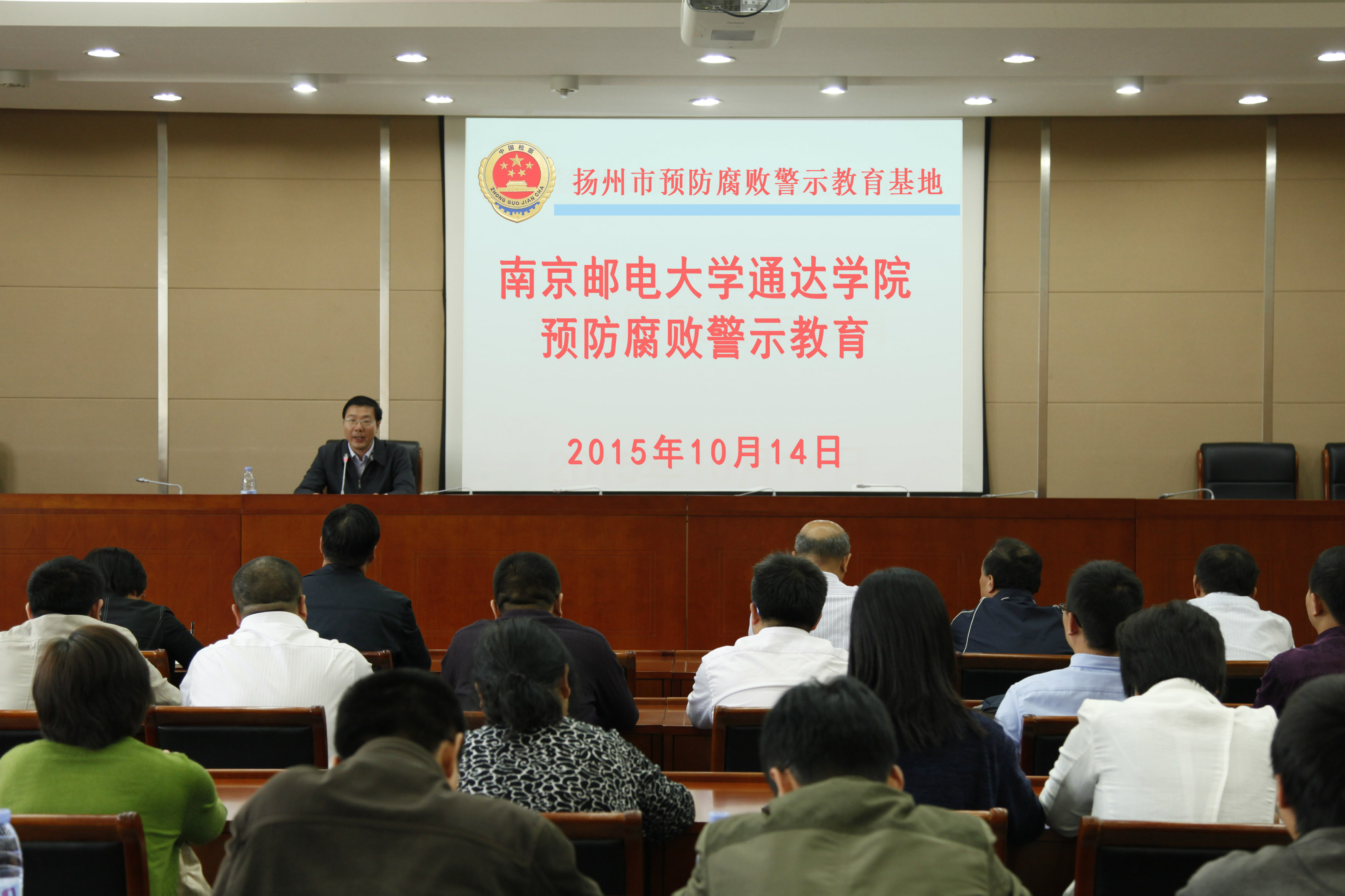 10月14日下午,学院党委组织党员领导干部前往扬州市预防腐败警示教育基地开展廉政警示教育活动。学院党政领导、学院科级党员干部、党支部书记近30人参加了此次活动。警示教育以“五个一”(看一场警示教育展览、观一部警示教育片、进行一次廉政谈话、举行一次廉政承诺、组织一次专题讨论)的形式展开,教育活动富有成效。