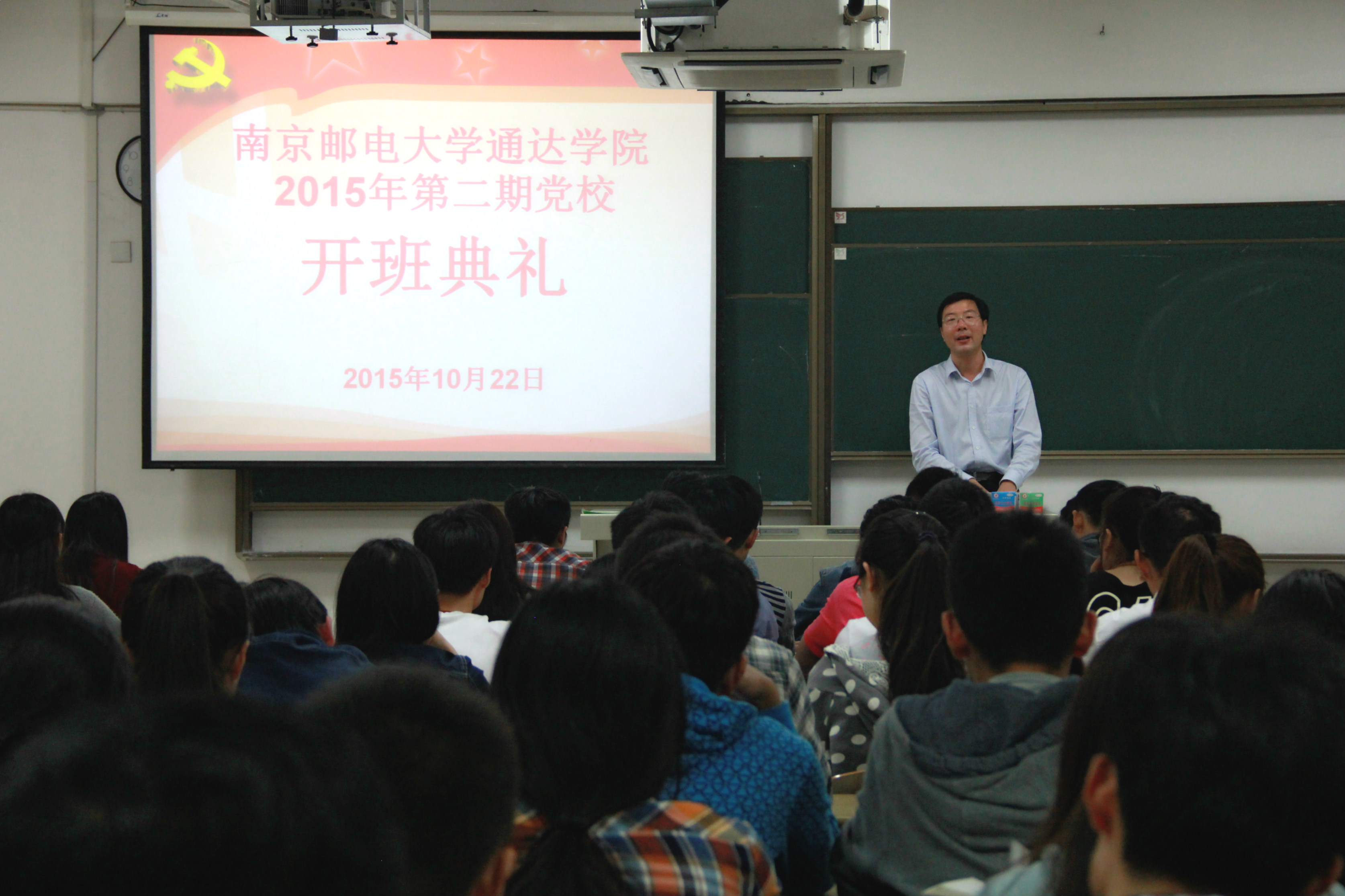10月22日晚,南京邮电大学第281期暨taptap点点体育2015年第二期入党积极分子培训班开班典礼在扬教1303隆重举行,全院106名入党积极分子参加了本期培训班。院党委书记戴兆骏、党办主任葛超、组织干事任建蕊、2012级、2013级辅导员出席开班典礼。开班典礼由党办主任葛超主持。
