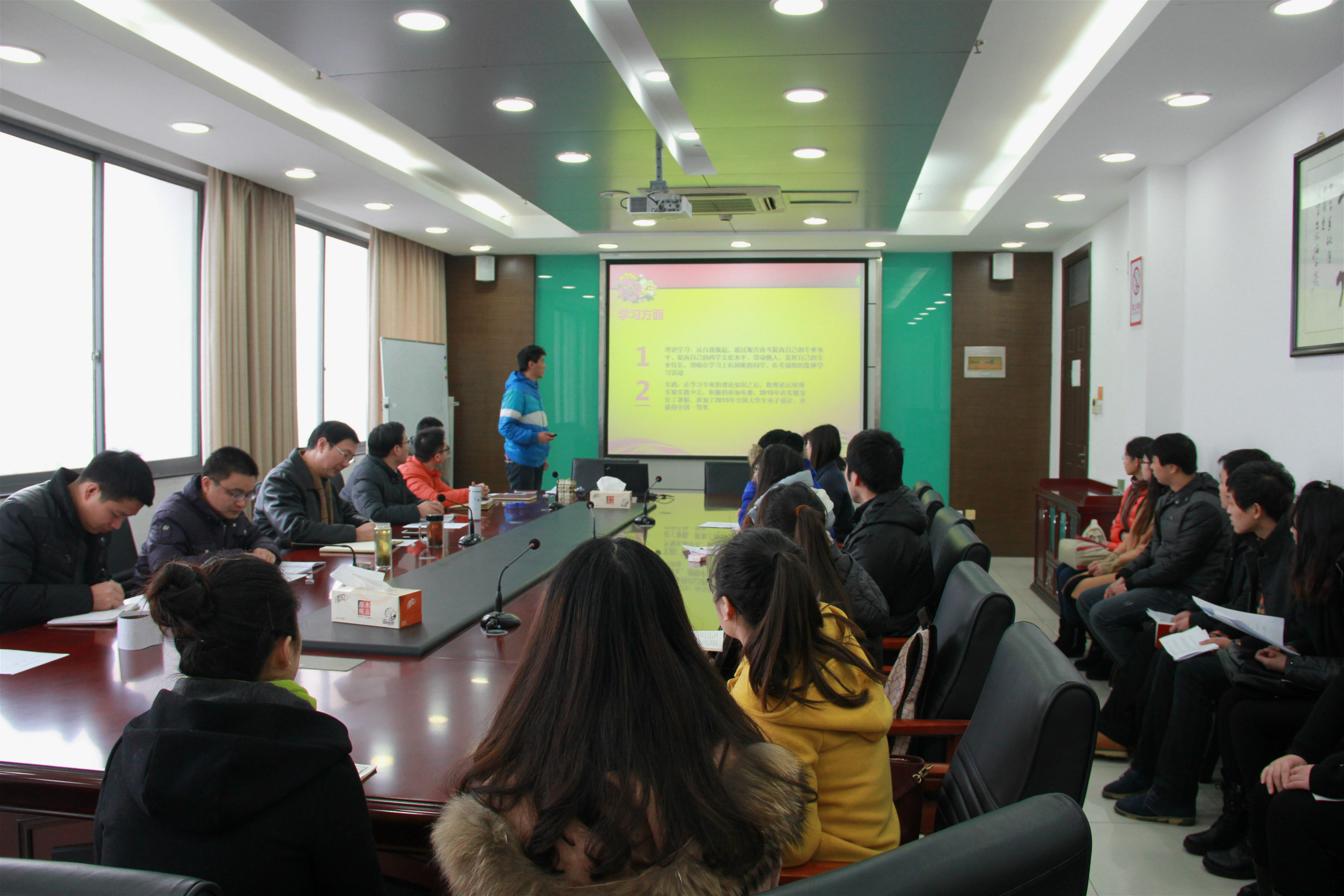 12月29日上午,学院2015年第五批预备党员转正答辩在行政楼10楼会议室举行。相关党支部负责人、预备党员及转正答辩者近30人参加答辩会。答辩小组由院党委书记戴兆骏、院党委副书记王立辉、党办主任葛超、学生党支部书记余西亚、徐永华、李敏和组织干事任建蕊组成。