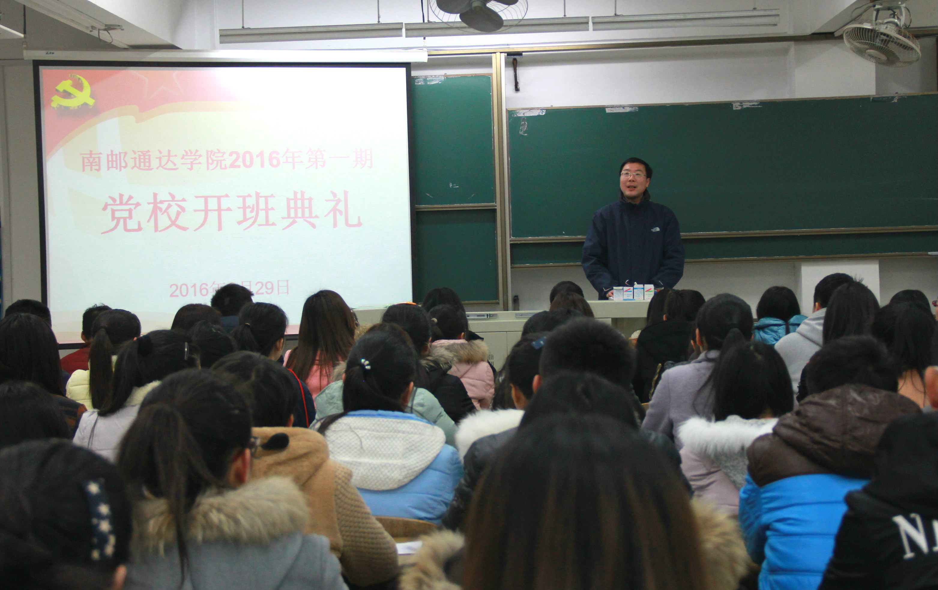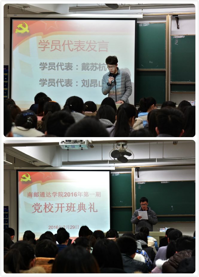 2月29日晚,南京邮电大学第293期暨taptap点点体育2016年第一期入党积极分子培训班开班典礼在扬教1308隆重举行,全院129名入党积极分子参加了本期培训班。院党委书记戴兆骏、党办主任葛超、组织干事任建蕊、2013级、2014级辅导员出席开班典礼。