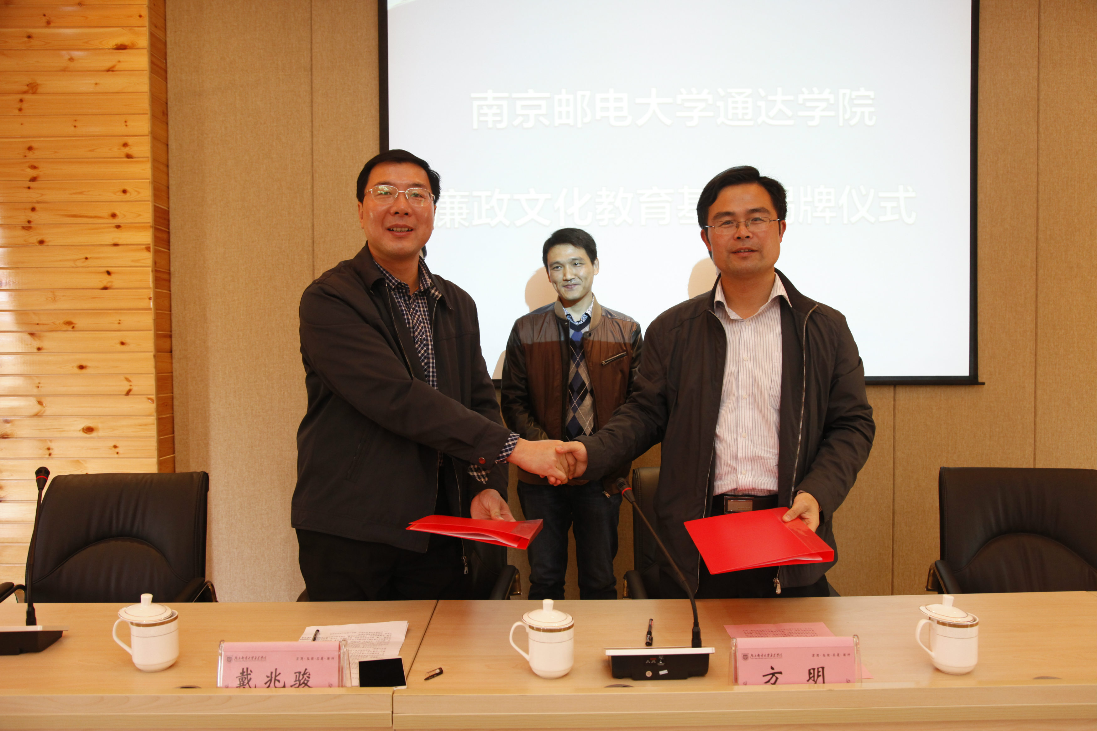 仪式上,院党委戴兆骏书记与仪征市枣林湾生态园管委会纪工委书记方明签署了《taptap点点体育与仪征市枣林湾生态园管委会廉政文化教育基地共建协议》;副院长包刚与枣林湾生态园管委会纪工委书记方明共同为学院“廉政文化教育基地”揭牌;方明书记和戴兆骏书记分别致辞。