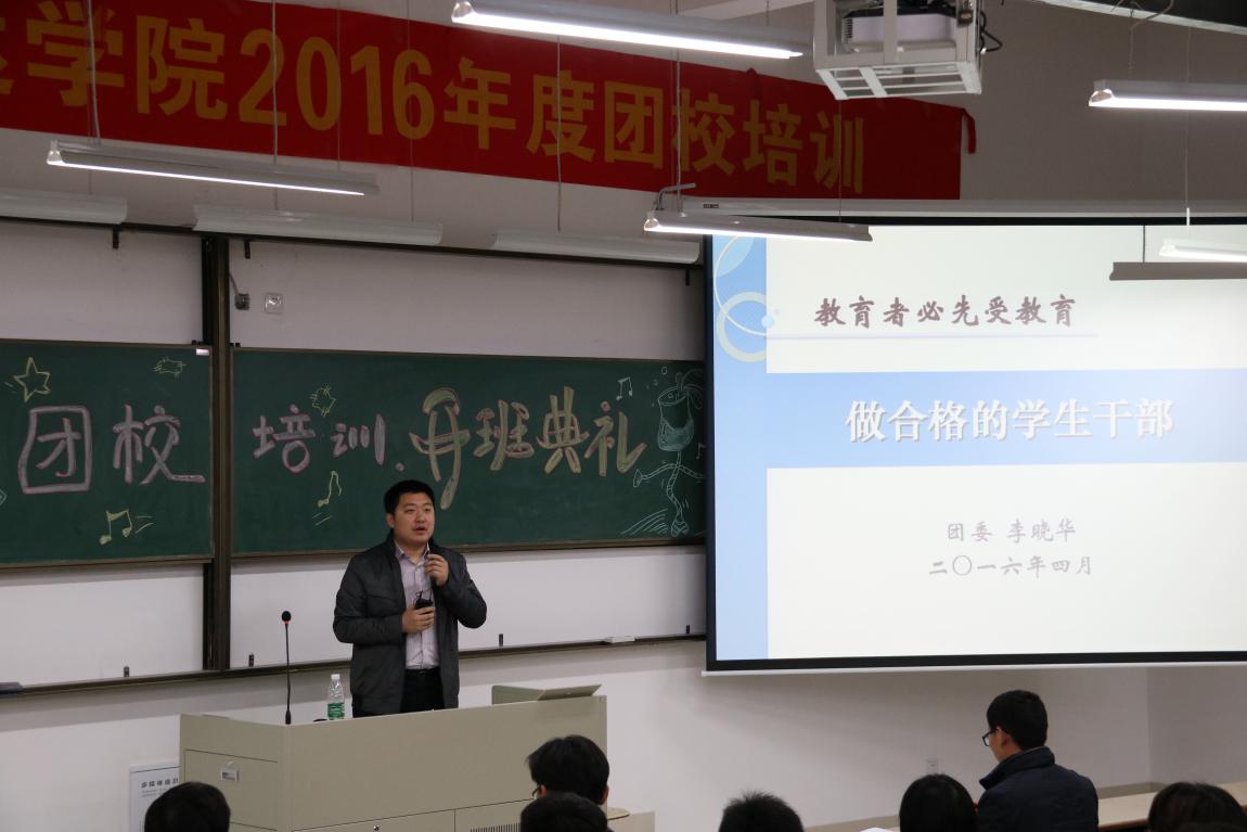 4月7日晚,taptap点点团委在扬实1314教室举行了2016年度团校培训开班典礼。南京邮电大学团委副书记李晓华、taptap点点党委副书记王立辉、团委书记解厚荣、各二级学院分团委书记以及参培学员150多人参加了本次开班典礼。开班典礼由团委书记解厚荣主持。