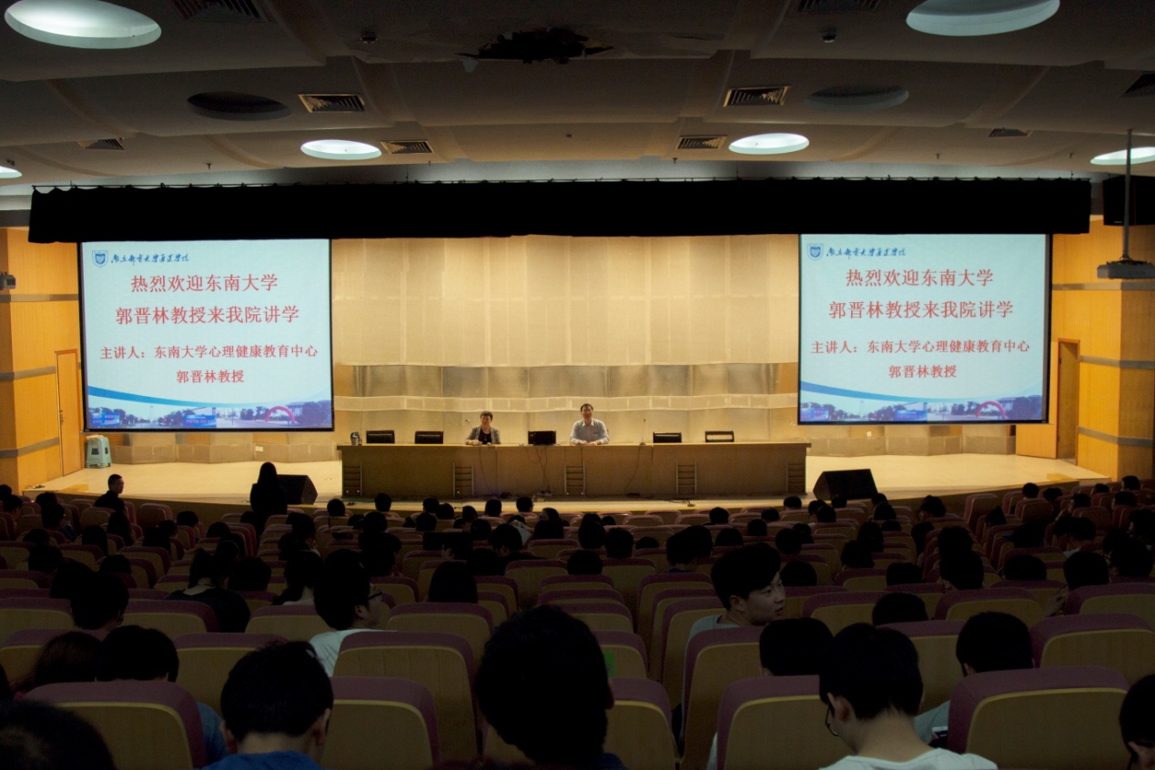 4月14日晚,江苏省大学生心理健康教育专家指导委员会委员、中国心理卫生协会注册心理督导师、江苏省心理学会大学生心理专业委员会副主任、东南大学郭晋林教授来taptap点点作了“谈谈爱情那些事儿”的情感主题讲座。讲座由江苏省心理学会大学生心理专业委员会副主任、院党委书记戴兆骏主持,院党委副书记王立辉、学工线全体老师及500名左右学生听取了讲座。