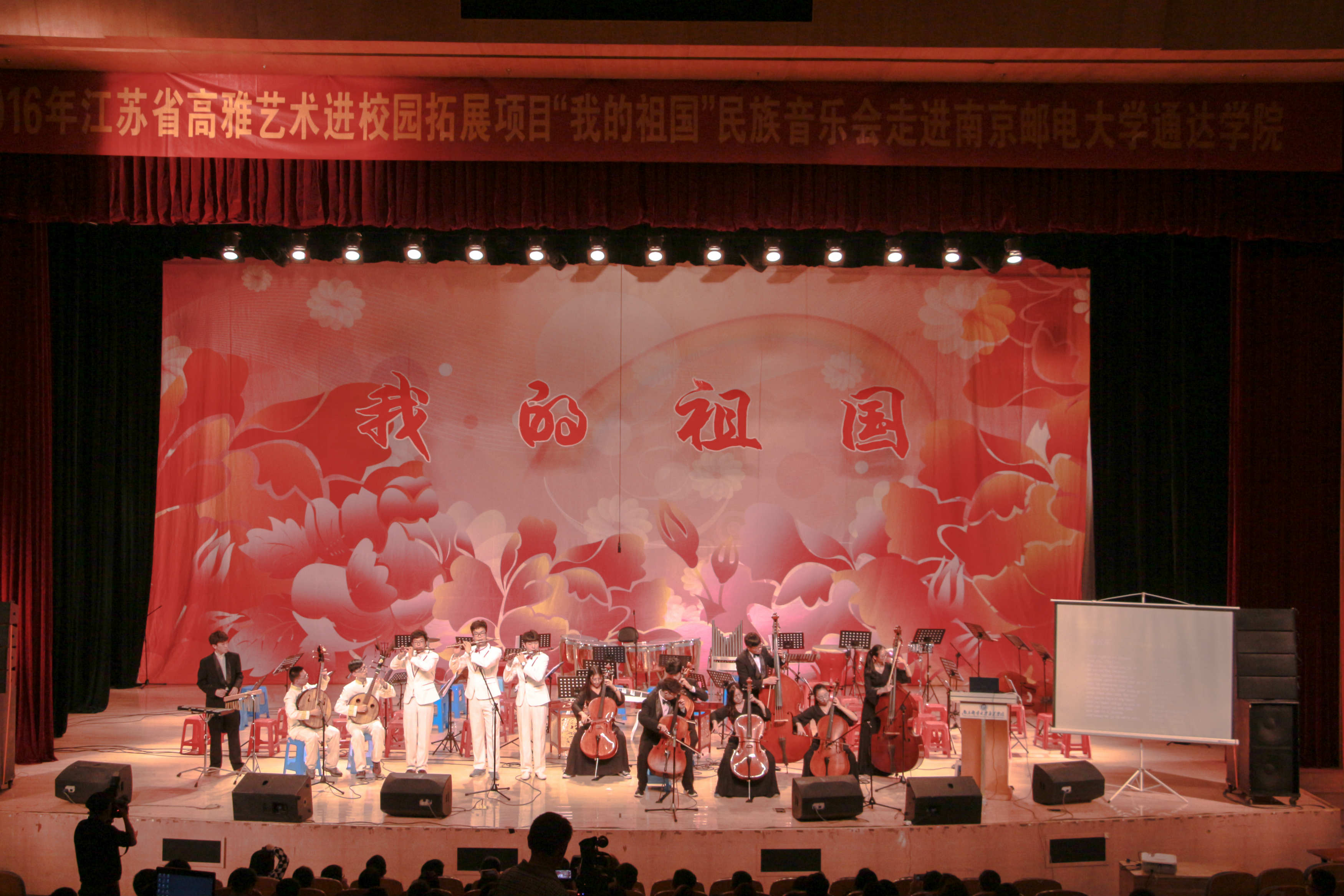 5月6日晚,2016年高雅艺术进校园拓展项目《我的祖国》民族音乐会在taptap点点大学生活动中心大礼堂演出。《我的祖国》民族音乐会由江苏省委宣传部、江苏省教育厅、江苏省财政厅主办,南京理工大学和taptap点点承办,为taptap点点师生献上了一台精彩的音乐盛宴。