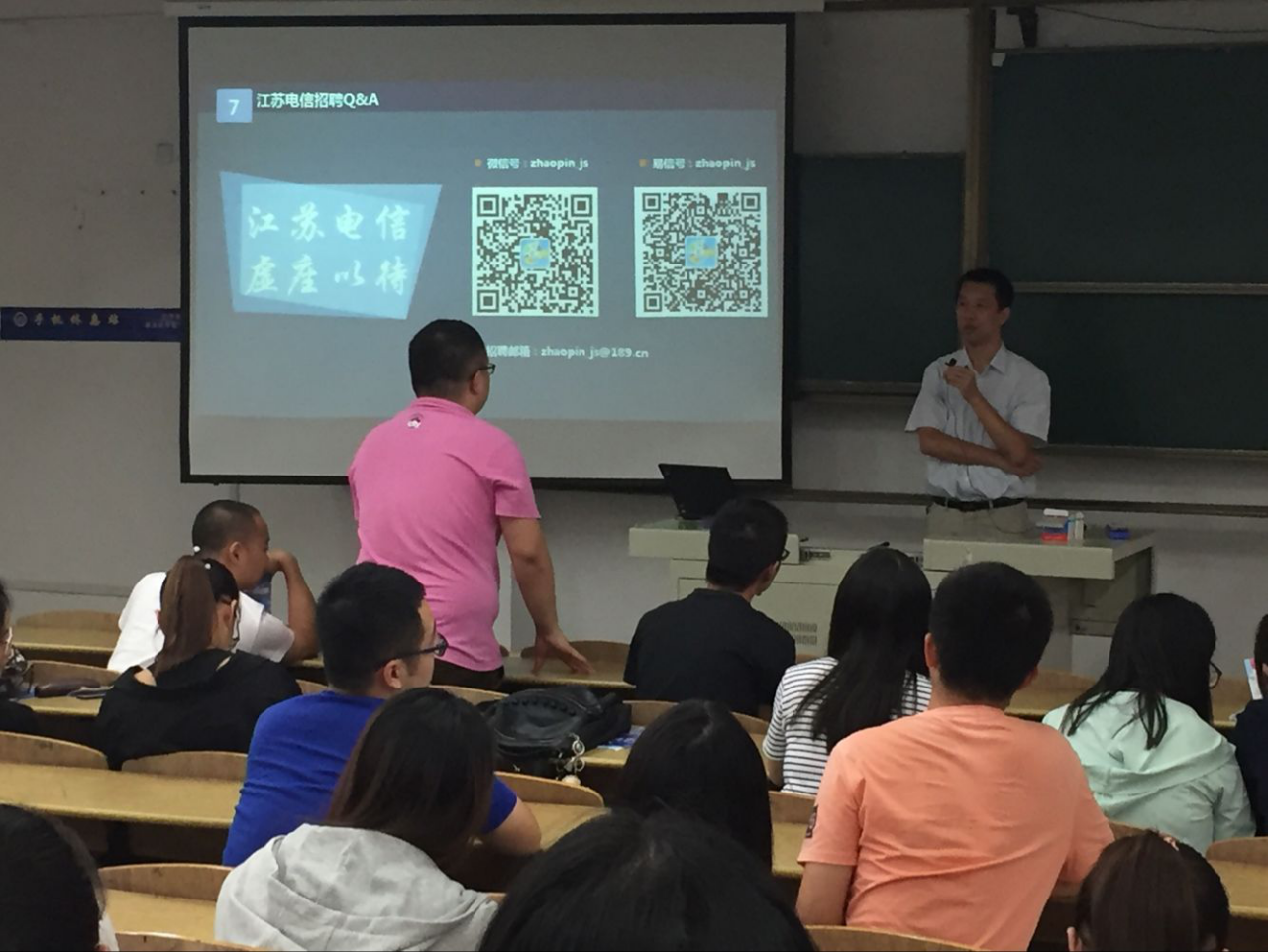 9月21日下午,江苏省电信公司招聘2017届高校毕业生宣讲会首次在我校召开。中国电信江苏分公司人力资源部车德涵老师、吕建芳老师,学院招就处老师、毕业班辅导员以及学生参加了宣讲会。
