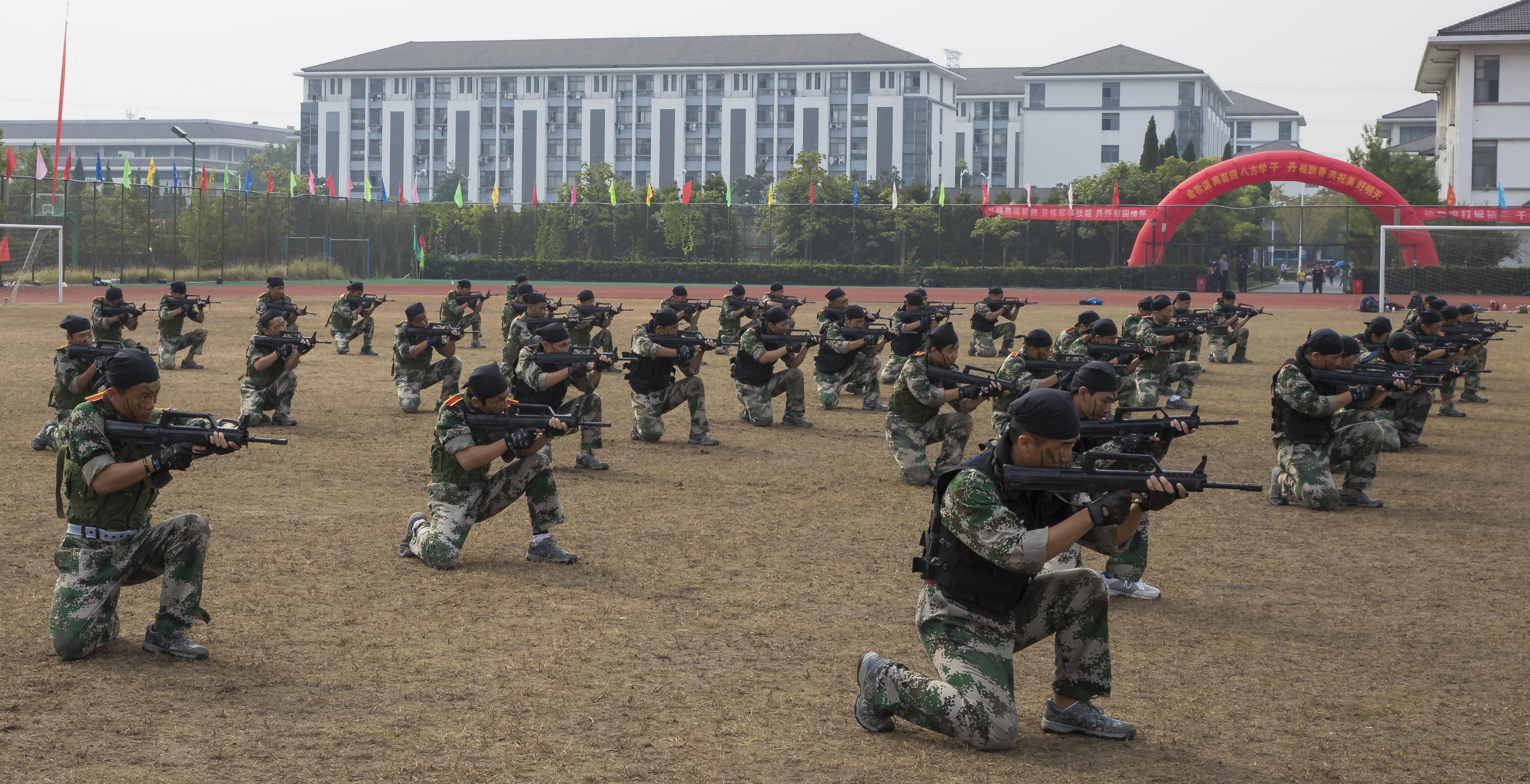 开学典礼在庄严隆重的升国旗仪式中拉开帷幕。院长宗平教授在阅兵曲的音乐中检阅了受训新生。受训新生在校旗护卫队的引导下,喊着高昂嘹亮的口号,迈着坚实有力的步伐,身姿矫健、精神饱满地依次通过主席台接受检阅,全场不时响起一阵阵热烈的掌声。受训新生以花样手语开场,先后进行了分列式、操枪法、内务、消防疏散演练、警棍术、反恐战术、格斗防身术、格斗术等项目的表演。
