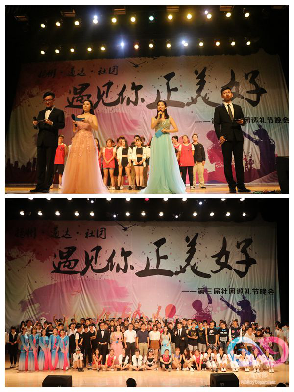 9月26日晚,由院团委主办、学生社团联合会承办的“扬州·通达·社团遇见你正美好”第三届社团巡礼节晚会在taptap点点大学生活动中心举行。党委副书记王立辉、团委书记解厚荣,扬州铭扬培训服务有限公司经理陈慧,中国联通扬州分公司经理王静,以及扬州市各高校社联主席、taptap点点辅导员代表、2016级新生共1200余人观看了此次晚会。