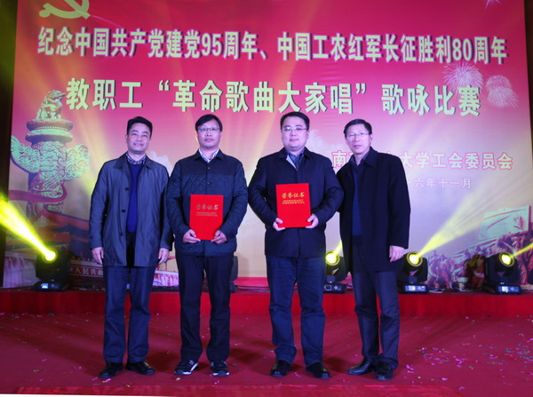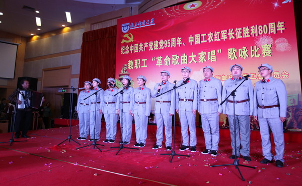 用歌声传承历史、让历史铭刻信念。为纪念中国共产党建党95周年、中国工农红军长征胜利80周年,教育引导广大教职工进一步坚定理想信念,11月9日,由校工会主办的教职工“革命歌曲大家唱”歌咏比赛在南京邮电大学三牌楼校区科学会堂二楼报告厅举行。副校长张志华出席并观看了演出。江苏省教育科技工会副主席孙焱、江苏省教育科技工会高教部部长高顺岭和东南大学、南京理工大学、南京工业大学等兄弟高校工会主席共同担任本次比赛评委。学校部分师生观看了比赛。