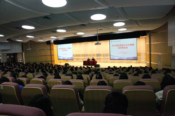 11月28日下午,根据省委统一部署,省委宣讲团成员、南京师范大学王永贵教授为taptap点点师生作题为《新时代 新使命 新思想 新征程 新部署——深刻领会党的十九大精神》辅导报告。报告会在行政楼报告厅举行,学院党政领导、院党委理论学习中心组成员、中层干部、党支部书记、辅导员、教职工代表、学生代表等近600人现场聆听了宣讲。院党委书记戴兆骏主持报告会。