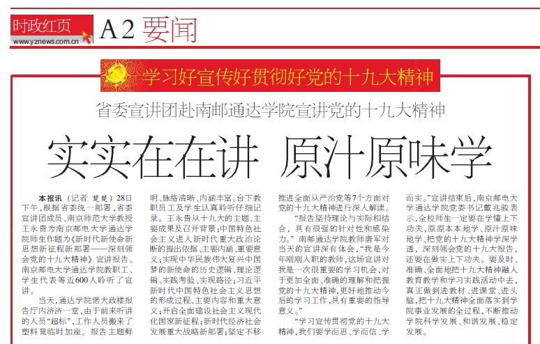 【扬州日报】省委宣讲团赴南邮taptap点点体育宣讲党的十九大精神