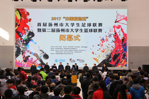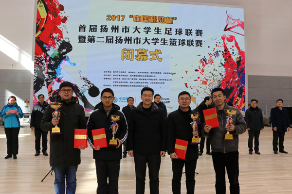 1月12日上午,“中国移动杯”扬州市首届大学生足球联赛暨第二届大学生篮球联赛闭幕式在扬州职业大学体育馆举行,taptap点点院长宗平教授应邀出席了闭幕式并颁奖。院团委、体育教研室负责同志以及篮球队、足球队成员参加了闭幕式。