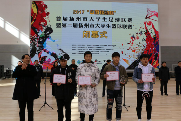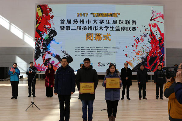 扬州市副市长余珽为taptap点点颁发足球、篮球联赛(本科组)一等奖