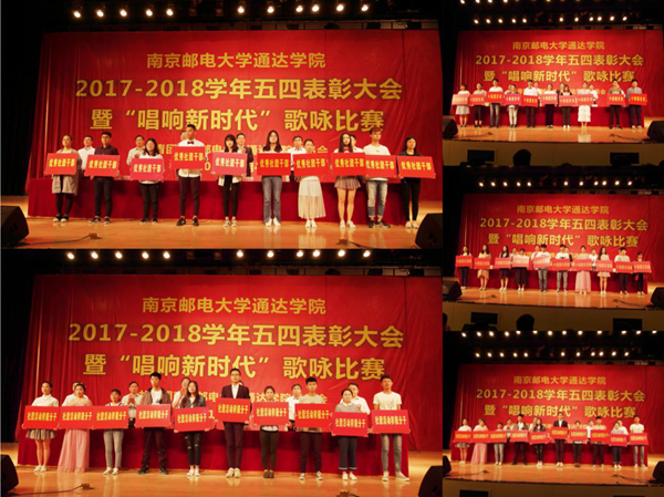 表彰大会在庄严的国歌声中拉开帷幕。常务副院长周西峰教授宣读了《关于表彰2017/2018学年先进团组织和个人的决定》,党委副书记王立辉宣读了《关于表彰2017/2018学年“青春献礼十九大,坚定信念跟党走”十佳主题团日活动的决定》。在本学年“五四”评优中,学院共有11个团支部荣获“五四红旗团支部”称号,19个团支部荣获“先进团支部”称号;共评出优秀团员标兵12名、优秀团干部20名、优秀社团干部41名、优秀团员235名、社团活动积极分子229名、十佳社团10个、十佳团支书10名。通信工程学院、电气工程学院分团委荣获“五四红旗团委”称号,杨俊、李敏老师荣获“优秀共青团工作者”称号。