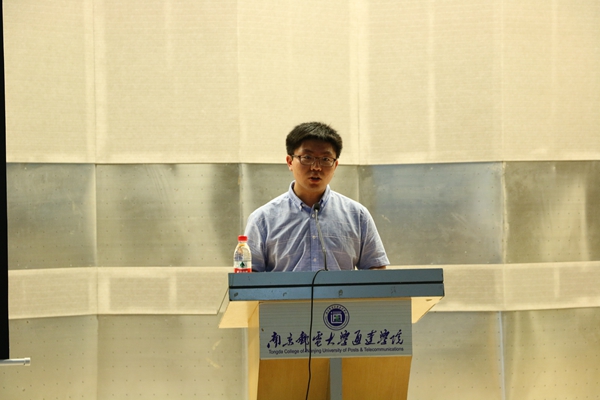 2018届毕业生李仁杰同学代表毕业生党员发言。他表示要牢记誓词,不辜负党组织和领导的关怀与厚望,发挥党员先锋模范作用,积极创业就业,文明离校。他承诺毕业后始终坚守理想信念,践行党的宗旨,传承南邮通达精神,立业担当,追求卓越,为实现中华民族伟大复兴的中国梦贡献青春和力量。