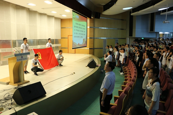 大会在雄壮的国歌声中拉开序幕。院党委副书记王立辉同志带领全体毕业生党员和近期加入党组织的预备党员进行宣誓。铮铮誓词激励和鼓舞广大党员同学牢记职责使命,时刻以党员的标准严格要求自己,保持党员先进性,发挥优良传统,坚定理想信念,以更加优异的成绩,践行对党的庄严承诺。