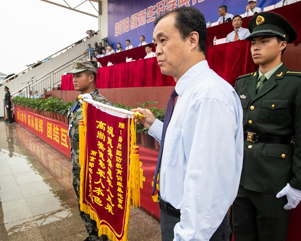 在嘹亮的《歌唱祖国》声中,2018级新生开学典礼暨军训成果汇报会顺利结束。