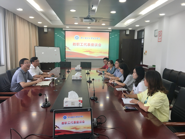 座谈会上,戴兆骏书记作为扬州市人大代表,针对扬州市人大常委会即将审议的扬州市农贸市场管理条例、科技创新工作、旅游工作、建筑产业化发展、非物质文化遗产保护等6个议题,认真征求大家意见。另外,还就学院改革发展稳定等方面存在的问题,以及工会工作和教代会筹备等方面,广泛征求教职工的意见和建议。