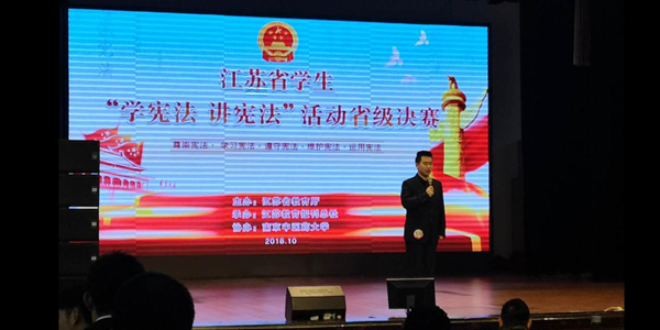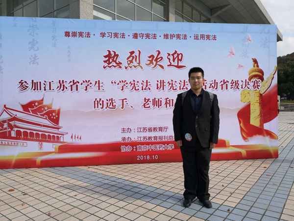 “学宪法 讲宪法”全省学生比赛分小学组、初中组、高中组和高校组,其中高校组分宁扬泰、苏锡常镇通、徐淮连盐宿三个片区进行,共有150所高校学生参赛,从中选出18人参加省级决赛。田笑同学在李印老师的指导下,在宁扬泰片区68所高校中脱颖而出,凭借小组第二的优秀成绩进入决赛。决赛在南京中医药大学举行,分主题演讲、命题演讲和主题辩论三轮进行。田笑同学同来自全省入围的18所高校代表角逐,最终取得了决赛二等奖的优秀成绩。