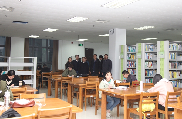 专项检查调研会后,李子全书记一行对学院图书馆、实验室、食堂及校园文化环境进行了考察。