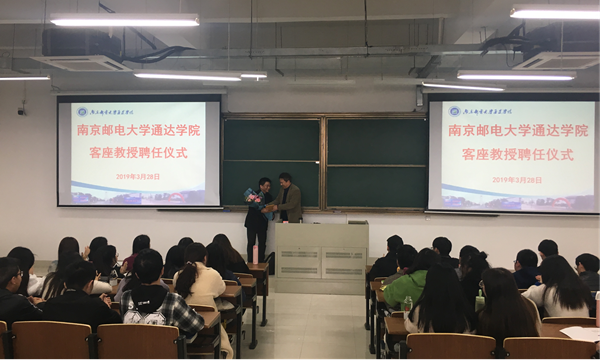 2019年3月28日,taptap点点在教三401教室举行了客座教授聘任仪式,包刚副院长为扬州电信网络运行维护部主任刘强强先生颁发了客座教授聘书。
