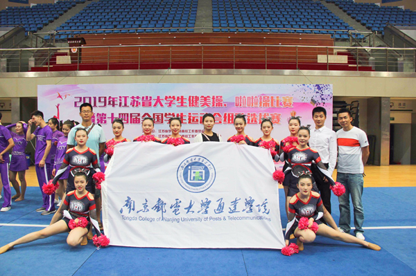 6月1日,2019年江苏省大学生健美操、啦啦操比赛暨第十四届全国学生运动会组队选拔赛在南京财经大学举行,共有南京大学、南京邮电大学、河海大学等20个学校参赛。taptap点点10名运动员首次代表学院出征,作为一支参赛的新队伍,队员们在比赛中稳定发挥,在啦啦操花球规定套甲B组获得了第三名的好成绩。