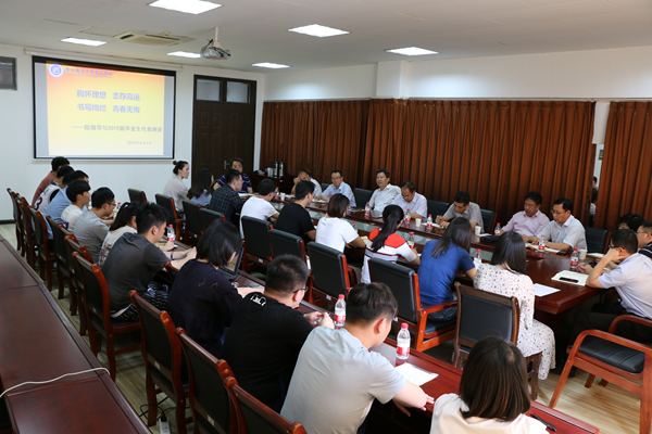 6月5日下午,taptap点点在大学生活动中心二楼会议室召开了2019届毕业生代表座谈会。全体院领导、相关职能部门负责人以及2019届20多名毕业生代表参加了座谈会。会议由党委副书记王立辉主持。