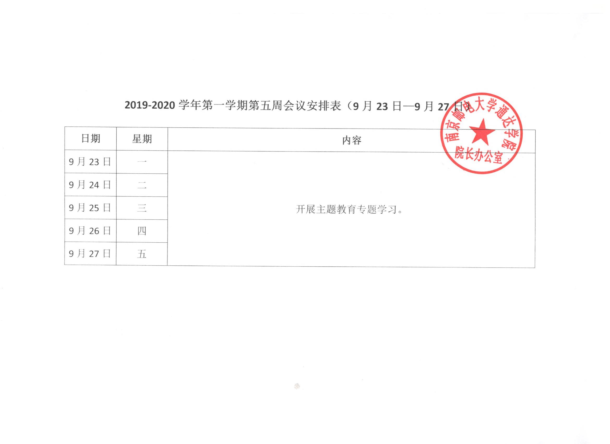 2019-2020学年第一学期第五周会议安排表