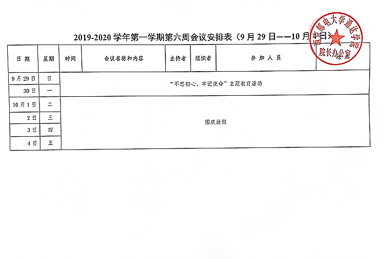 2019-2020学年第一学期第六周会议安排表