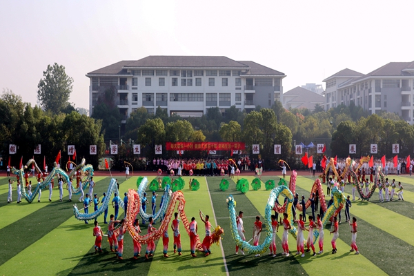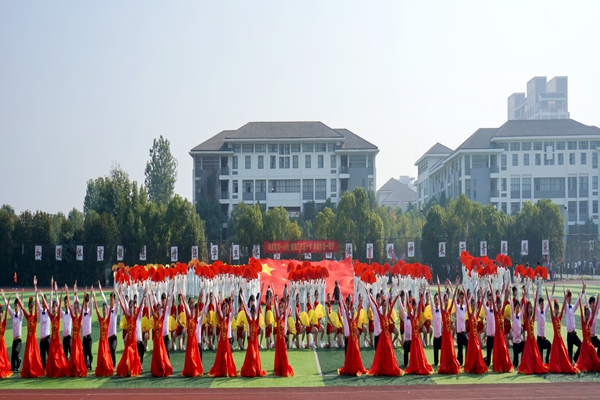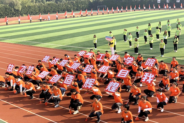 入场式上,校旗队、彩旗队、鲜花队、气球队、各二级学院、教职工代表组成的方阵队伍踏着整齐矫健的步伐,精神焕发、气宇轩昂地依次走过主席台。龙狮表演《盛世华章——新时代》、第九套广播体操表演、大型团体操表演《青春赞歌》,尽展青春的炫彩。