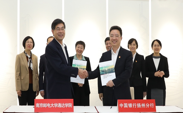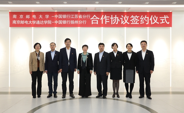 11月12日下午,南京邮电大学与中国银行江苏省分行、taptap点点体育与中国银行扬州分行银校合作协议签约仪式在中国银行江苏省分行北楼20楼举行。中国银行江苏省分行行长宁效云,副行长项晞、郭炼,扬州分行行长周广峰,学院理事长、南京邮电大学校长叶美兰,院长王承宽、党委书记汪业周等领导出席签约仪式。