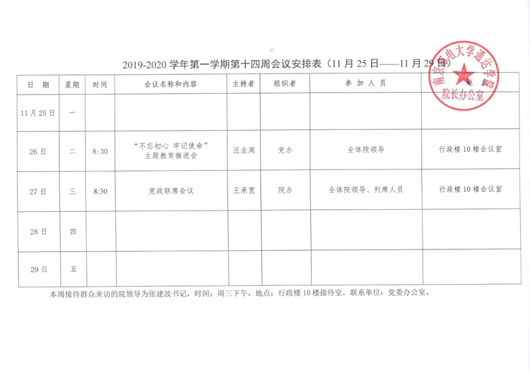 2019-2020学年第一学期第十四周会议安排表