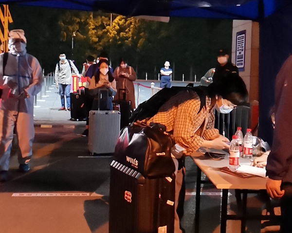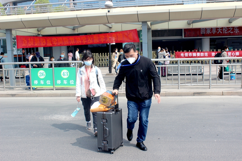 “辅导员之前就告诉我们学校会有校车接我们回学校,我当时觉得就很惊讶,我高中同学上的大学都没有像我们学校这样,当时就觉得学校挺体贴,怕我们坐公交打的不安全。还有一件事就是我之前时间填返校证明时间填错了本来是早上10点半写成了晚上10点半,昨天辅导员就打电话给我,让我出了火车站不要走,学校专门派车来,让我有点受宠若惊,后来问了同学6点之后来的人很少,学校也怕天黑了不安全,专门小车子接送,我特别感动”。一名6号楼431宿舍2017级不愿意透露姓名的学生激动地说到。