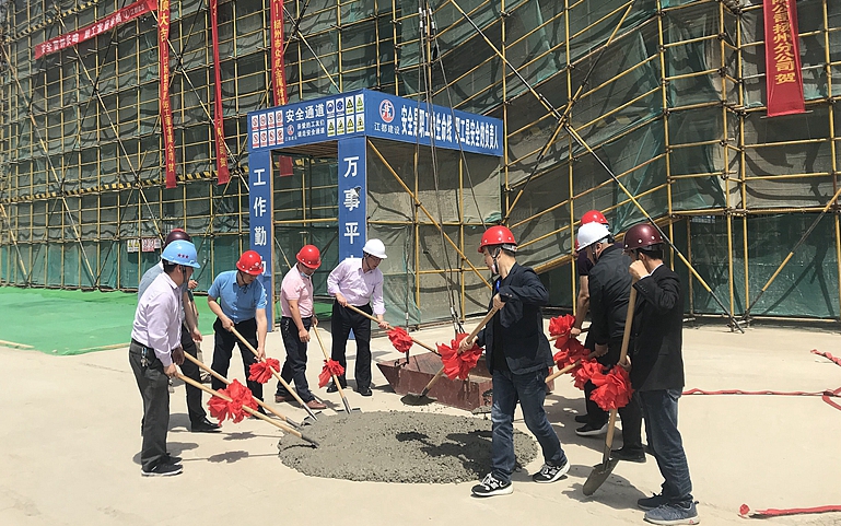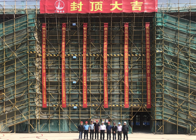学院二期二标段科技创业园、宿舍楼、游泳馆总建筑面积约为2万平方。二期工程在扬州市委、市政府及扬州教育投资集团的鼎力支持下,工程建设克服疫情影响,保质保量顺利实现主体结构封顶。