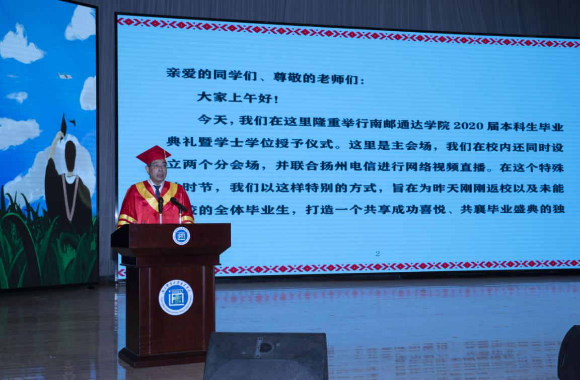 南京邮电大学党委常委、副校长孙力娟教授发表题为《在坚守中成就更好的自己》的毕业讲话。她首先代表南京邮电大学向圆满完成学业的同学们表示最热烈的祝贺,向精心培养同学们成长成才的教职员工、家人亲友表示最诚挚的问候,向一直以来关心支持taptap点点发展的扬州市委市政府表示最衷心的感谢。她提出在当代社会和当下世界,在今年这个特殊的毕业季,灾难风险成为高频热词,如何面对成为关键一招,人类向何处去成为深度关切。全体毕业生应思考三个问题:我们应以怎样的态度面对?我们应对的力量来自何方?我们如何坚守人类的初心?她围绕坚守这个话题提出:第一,信念是坚守的原初动力;第二,实干是坚守的直接动力;第三,创新是坚守的不竭动力。她寄语全体毕业生坚定守卫出发的初心,坚决保持奋斗的姿态,坚持提升创新的本领,在坚守中成就更好的自己!