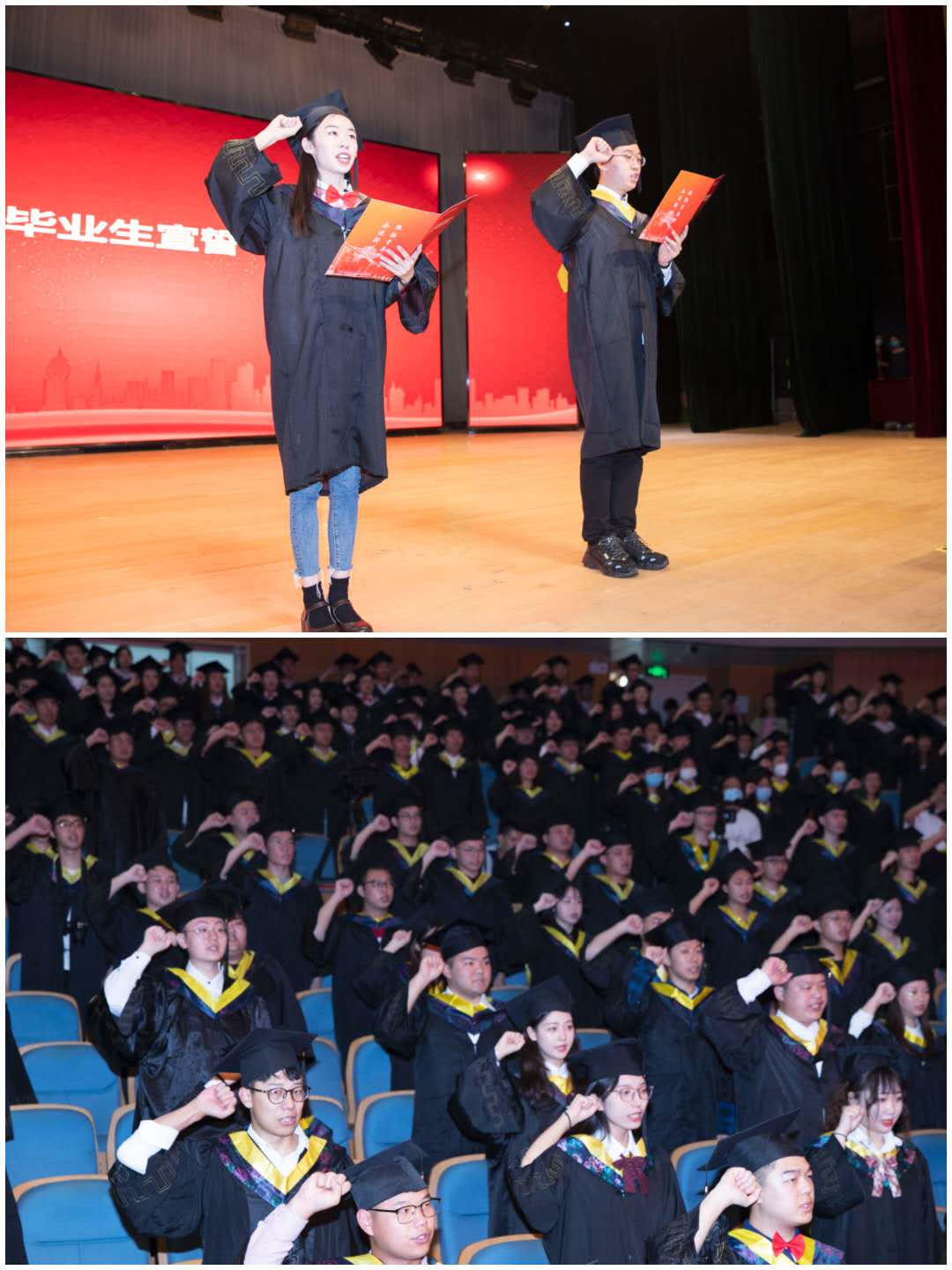 毕业典礼在《担当使命 砥砺前行》诗朗诵中拉开帷幕,在《不忘初心》歌曲中进入高潮。