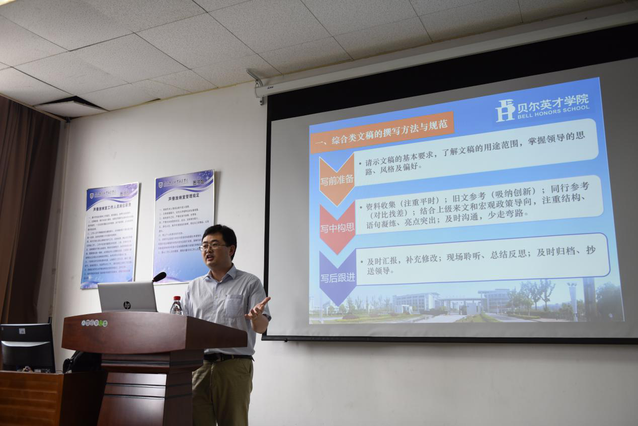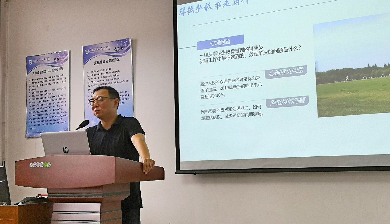 南京邮电大学学生工作处副处长王晶、自动化学院党委副书记陈迪生、贝尔英才学院副书记郭强分别作了《新时代辅导员工作的挑战和创新》《以就业竞争力提升为目标的高校学生工作实践》《宝剑锋从磨砺出 梅花香自苦寒来——各类文稿撰写的方法与规范》的专题讲座。王晶副处长从辅导员工作面临的职责主次不分、职业能力结构性不足、重要的专项工作处置困难等方面,结合自身工作经验,提出了解决思路和指导性建议。陈迪生副书记从学生工作实践出发,分别从学生工作的总体思路、班级班风学风建设、学生干部领导力培养、学生创新创业意识培养四个方面,就如何提升学生综合竞争力对辅导员进行了指导。郭强书记主要讲解了常用综合类文稿、一般新闻稿、一般会议纪要的撰写方法与规范,以及如何撰写人文社科类科研项目申报材料进行了讲述。他们的讲座从学生管理现状入手,立足学生工作实际,针对学生工作的困境和痛点,通过丰富的工作案例和生动的经验分享,给所有学工线老师上了极具“实战化”的一课,对进一步提升学生管理工作具有重要的现实意义。讲座结束后与会老师还与主讲专家进行了现场交流,听取了专家给予的指导和建议。