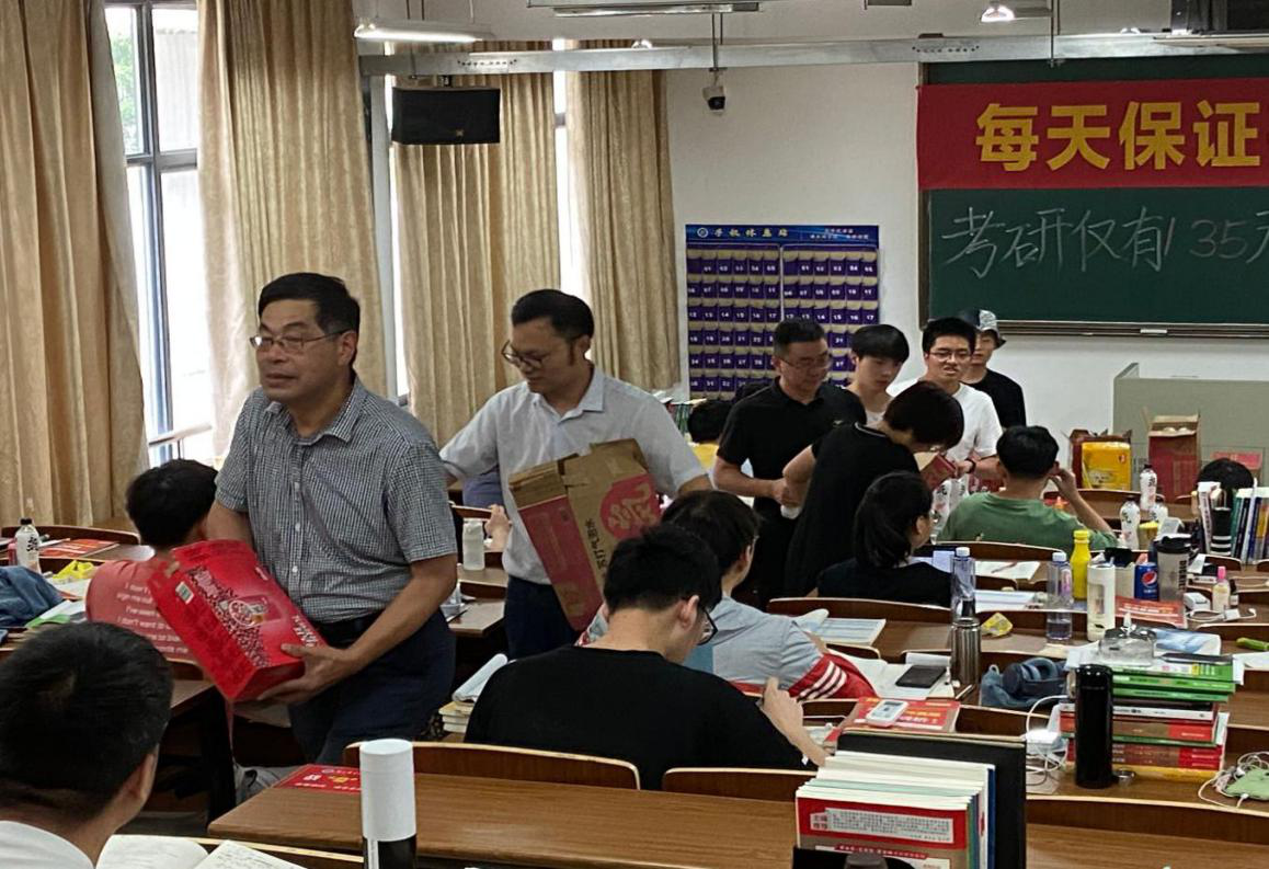 在考研教室,领导、老师们为考研学生送上了慰问品,并鼓励同学们坚守考研初心,坚持考研梦想,为实现考研目标努力拼搏,不懈追求,同时也祝愿考研学子梦想成真。