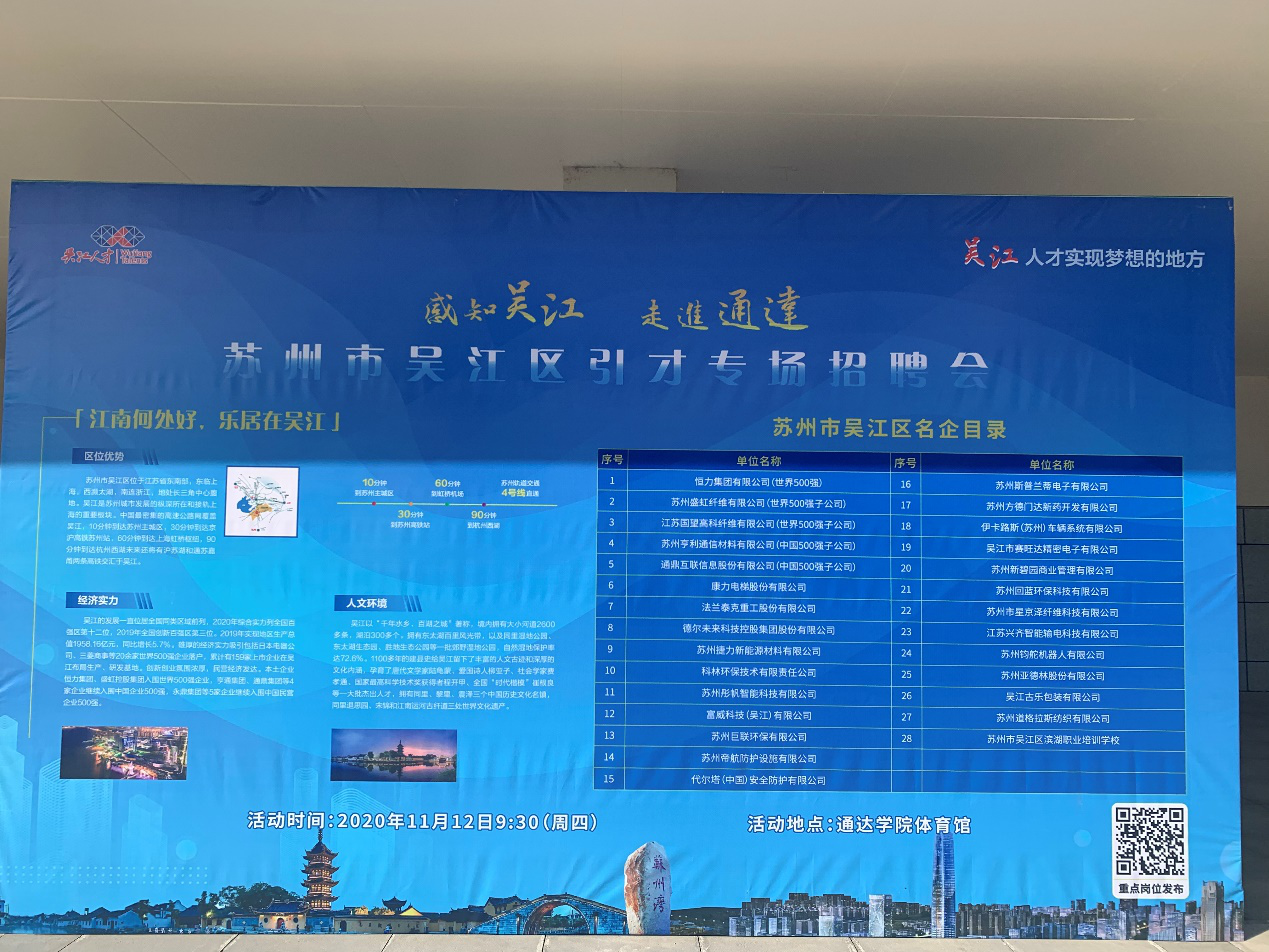 吴江地处长三角中心腹地,是苏州城市发展的纵深所在和接轨上海的重要板块,发展一直位于全国同类区域前列。为加快推进创新驱动和人才优先发展战略,深入宣传推荐创新创业环境,精准挖掘名校人才,吴江区在全国重点高校开展2020年赴外校园引才活动。