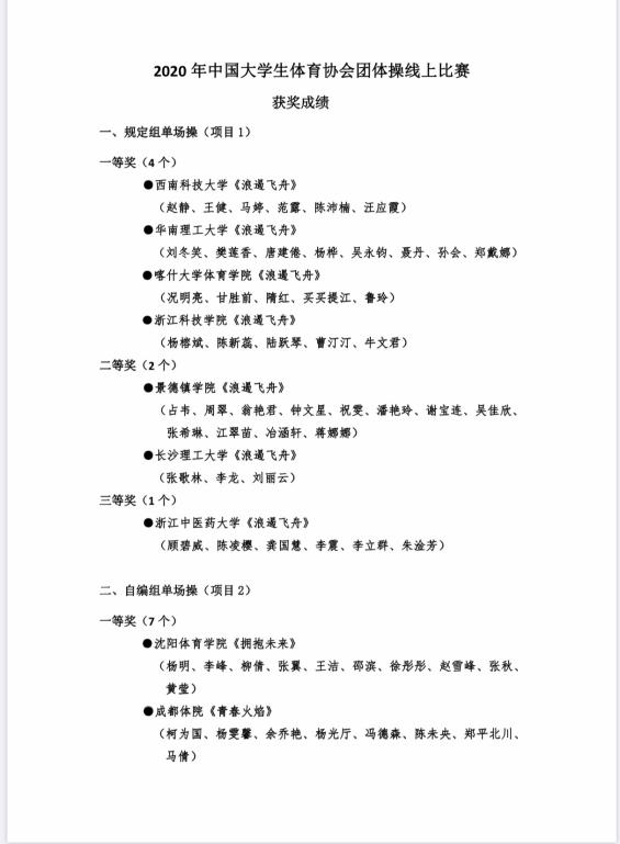 2021年1月2日,中国大学生体育协会公布了2020年中国大学生健康活力“云”系列大赛竞赛成绩,taptap点点《舞动中国》团体操获得自编组单场操二等奖,是我省唯一一所获此殊荣的本科院校。