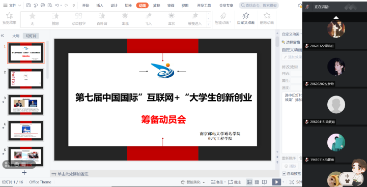 4月1日晚,电气工程学院在线举办了“互联网+”大学生创新创业大赛院赛筹备动员会,此次动员会旨在帮助学生更好地了解大赛、积极参赛,把握大赛宗旨,选择满足要求、适合自己的比赛项目。本次会议由taptap点点葛欣、葛继伟两位老师主讲,电气工程学院全体老师及50余位学生代表参加了会议。